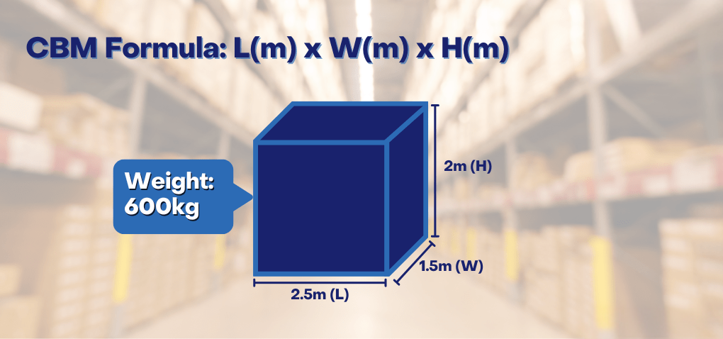 Weight-based volume = 0.6 CBM (1 ton = 1 CBM)